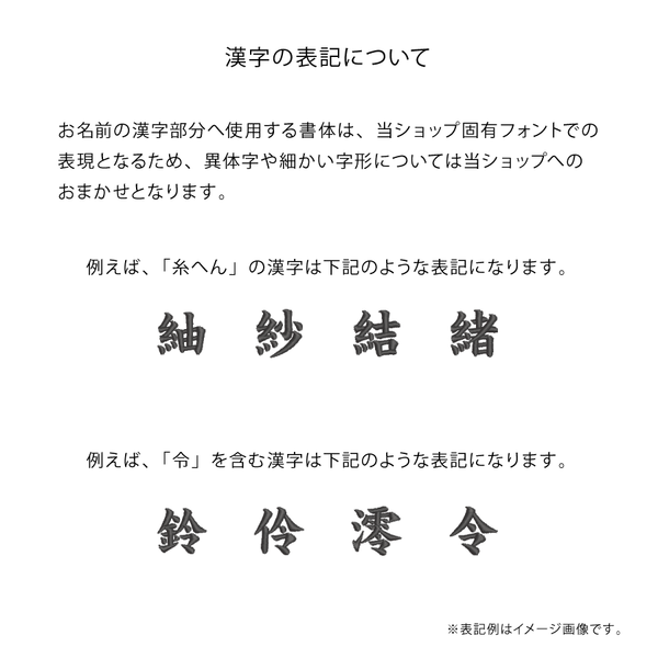 ※漢字は当ショップ固有フォントでの表現となるため、異体字や細かい字形についてはこちらへのおまかせとなります。